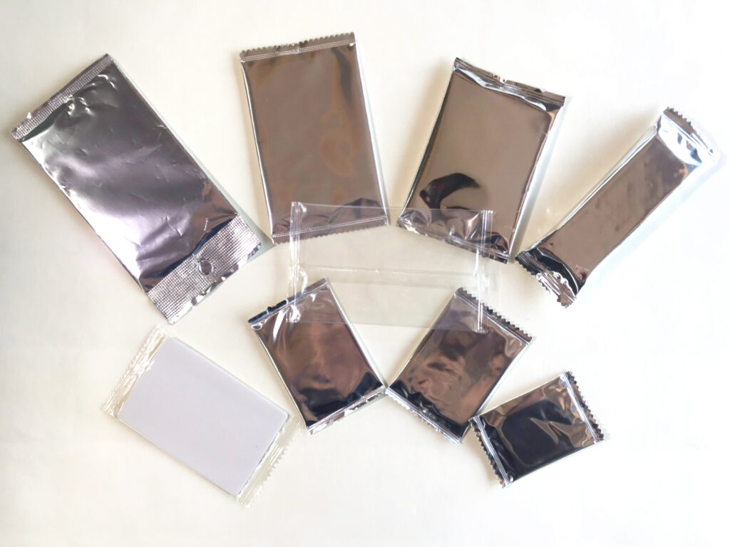 アイ・パックの仕事・技術 2023.07.202025.03.06 WORKS アイ・パックの仕事・技術 開けるときの ドキドキ ワクワク 感動 笑顔届ける人のやさしい気持ちの一助となっていきたい 開けるときの ドキドキ ワクワク 感動 笑顔 届ける人のやさしい気持ちの一助となっていきたい ピロー包装 当社で取り扱っているピロー包装は主に横ピロー包装という包装形態です。トレーディングカードやコレクションカード、写真、シール類のほかにクッキーや煎餅、ウェハースといったお菓子製品の包装も承っております。ほかにも缶バッジ等のグッズや食玩、ノベルティ各種、様々な品物に対応可能です。 無地透明仕様、アルミ蒸着5色印刷仕様など包装フィルムも多種ご用意させて頂きます。 長さ: 40mm~200mm幅 : 40mm~125mm高さ: ~15mm 製品の材質、形状により異なりますので詳しくは一度お問い合わせください。小ロットでも承っております。(要ご相談、要お見積り) ピロー包装ラインナップ(一例) シュリンク包装 熱を加えると収縮するフィルムで包装加工する技術です。包装する品物の形にピッタリフィットする仕様で見た目を美しくする他、開封防止の役割も担っています。アイ・パックではピロー包装が複数パック梱包された個箱にシュリンク包装を行ったり、書籍やDVDの包装、リップスティックのような小型製品でも対応可能です。 その他サービス 多くの製造工場でつくられた品物は機械化が進み生産性が向上していますが、アイ・パックでは機械では出来ない、人力が必要となる緻密な工程を承っております。 ■ラベル貼り作業■お菓子の詰め合わせアソート■店頭に置くための什器の部品梱包■缶バッジのカシメ加工■福袋の詰め込み作業■ガチャカプセル 創業以来、本当に様々な手加工に携わり、技術と正確さには自信があります。コレクションカードにおけるレアカード『ジャージカード』の切り取り作業、貼り付け合紙作業ではユニフォームの他、野球のバット、サッカーのスパイクシューズ、ボクシングのグローブ、アイドルの水着など様々なジャージカード作成の実績があります。 その他サービスラインナップ(一例) Slideお菓子の詰め合わせアソート手作業で正確、かつスピーディに作業を行います。菓子のような形の崩れやすいものでも丁寧な梱包を行います。 Slideガチャカプセル手作業で正確、かつスピーディに効率良く作業を行います。単純作業こそアイ・パックのサービスをご利用ください。 Slide缶バッジのカシメ加工技術の必要な作業も長年の知識と豊富な経験でスピーディに綺麗に仕上げます。 Slideラベル貼り作業量が膨大になりやすい作業もアイ・パックのリソースを提供する事で御社の作業負担を大幅に削減いたします。 Slide什器の部品梱包什器のような突起の多い変形物の梱包が可能。衝撃に弱い箇所を見極め安全に運搬できるように梱包します。 情報管理について 取り扱い商品の情報については社内で教育を行い、社外に流出しないように徹底しています。その為、サンプル写真など具体的な写真は掲載しておりませんのであらかじめご了承下さい。弊社のサービスのご利用をご検討されている方につきましては、上記の旨の通りお客様情報についても厳重に管理しておりますので、未発売商品の包装も安心してご依頼ください。